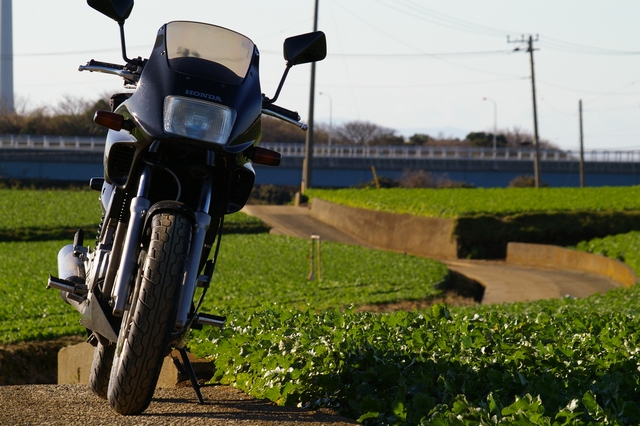 風車のある公園から、少し離れた場所にある農道に移動。普通の公道で写真を撮っても良かったのですが、交通の妨げになりそうだったので農道へ。脇には三浦大根の畑が一面に広がっていました。