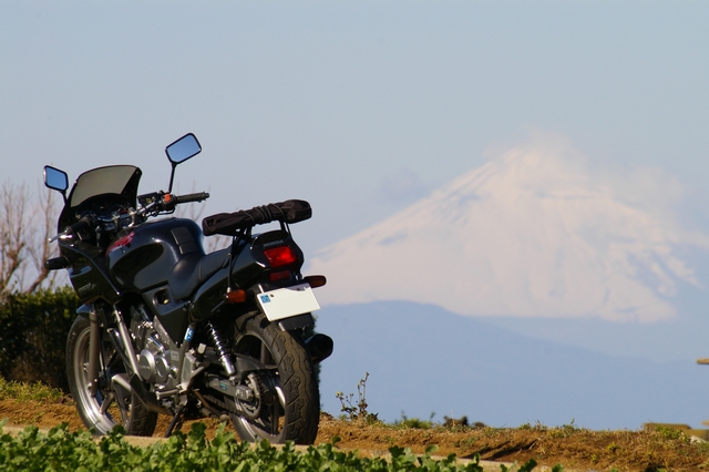 辺りで一番小高い所へ移動すると、相模湾をはさんで富士山が見えました。・・・って、相模湾を写しきれて居ませんけど(汗