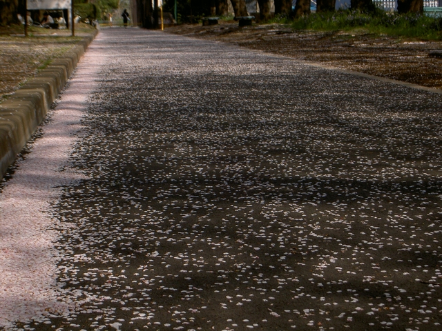風が強いと、前が見え難くなるくらい桜の花びらが舞い散ります。この数の落ち葉が散ったら見苦しいかもしれませんが、桜の花びらというだけでちょっと笑顔になれる気がします(・∀・`) [ Revio KD-410Z ]