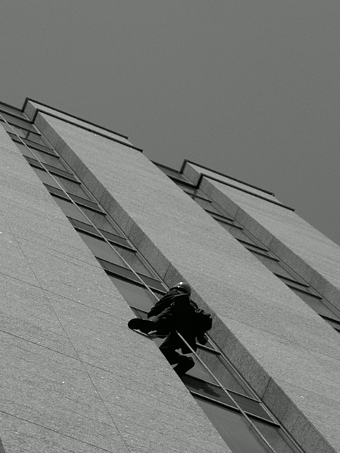 まぁ、それでもやっぱり東京の渋谷なわけで。上を見上げたらロープ一本で宙吊りになりながらも窓を清掃する人が。凄いなぁ・・・気をつけて!!